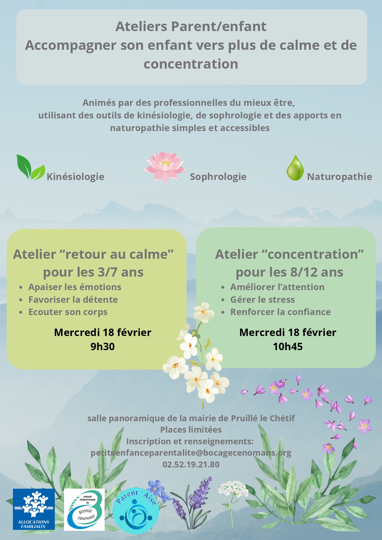 Atelier Parent/enfant – Accompagner son enfant vers plus de calme et de concentration – 3 à 12 ans – Mercredis 18 février 2026