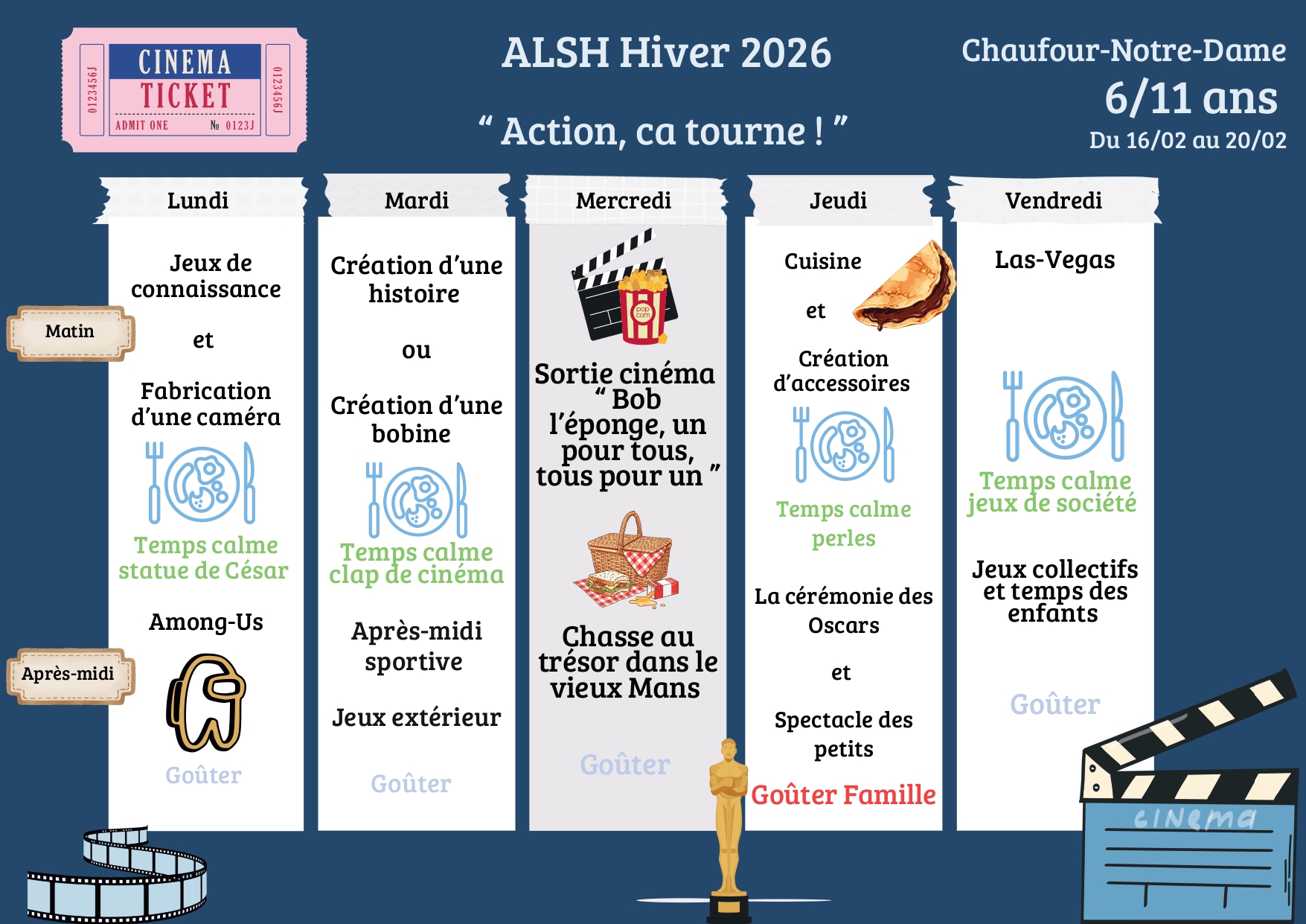 Planning d’activités ALSH – Chaufour notre Dame – Du 16 au 20 février 2026