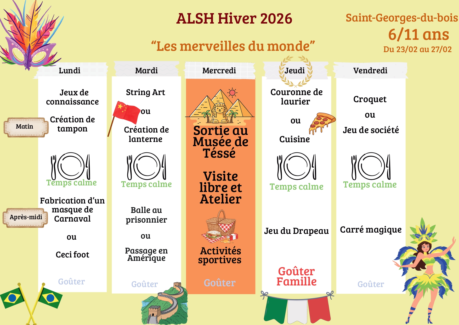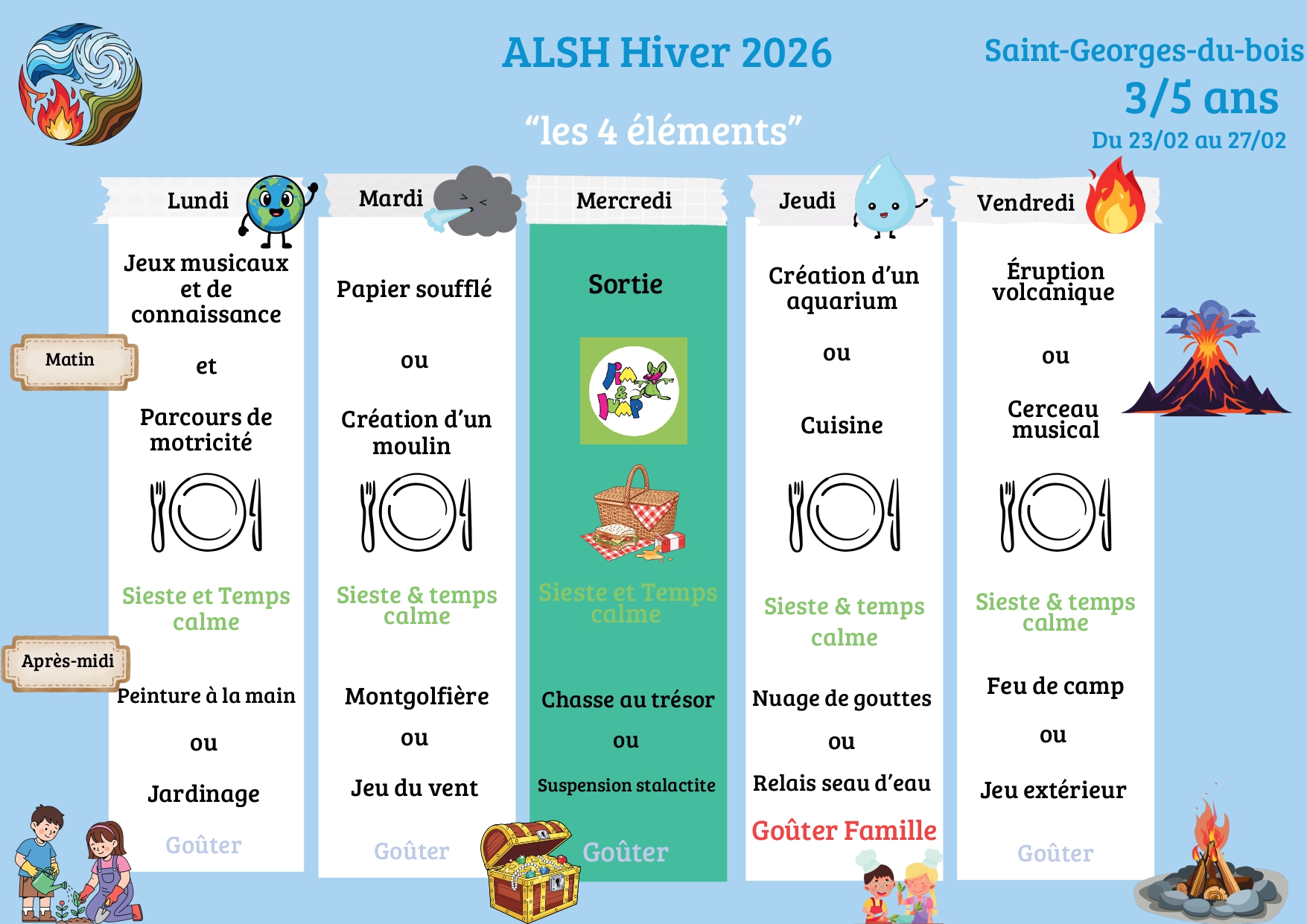 Planning d’activités ALSH – Saint Georges du Bois – Du 23 au 27 février 2026
