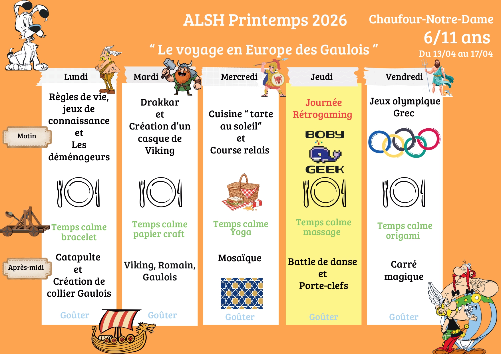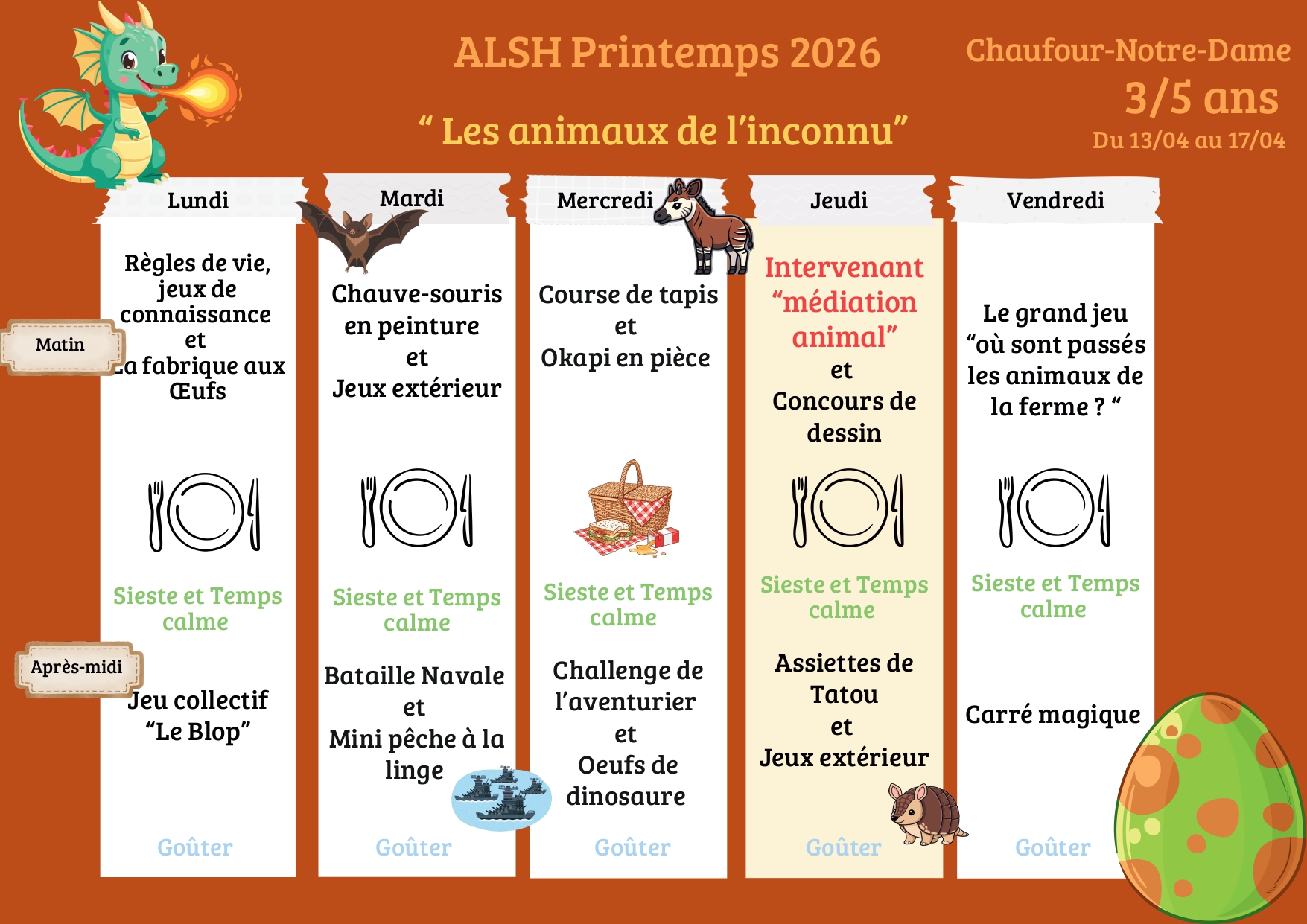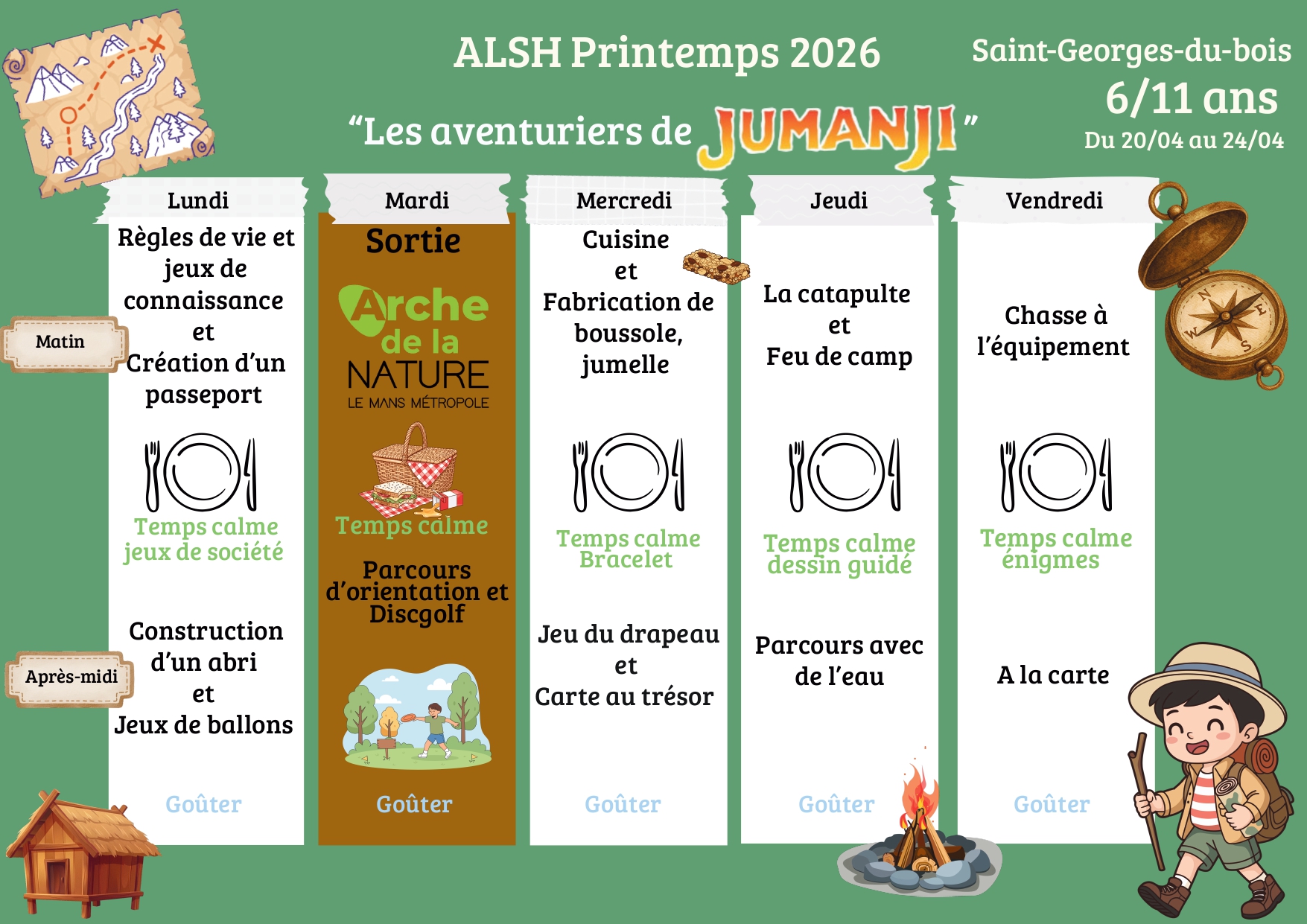 Programme d’activités ALSH du 13 au 24 avril 2026 à Chaufour notre Dame et Saint Georges du Bois.
