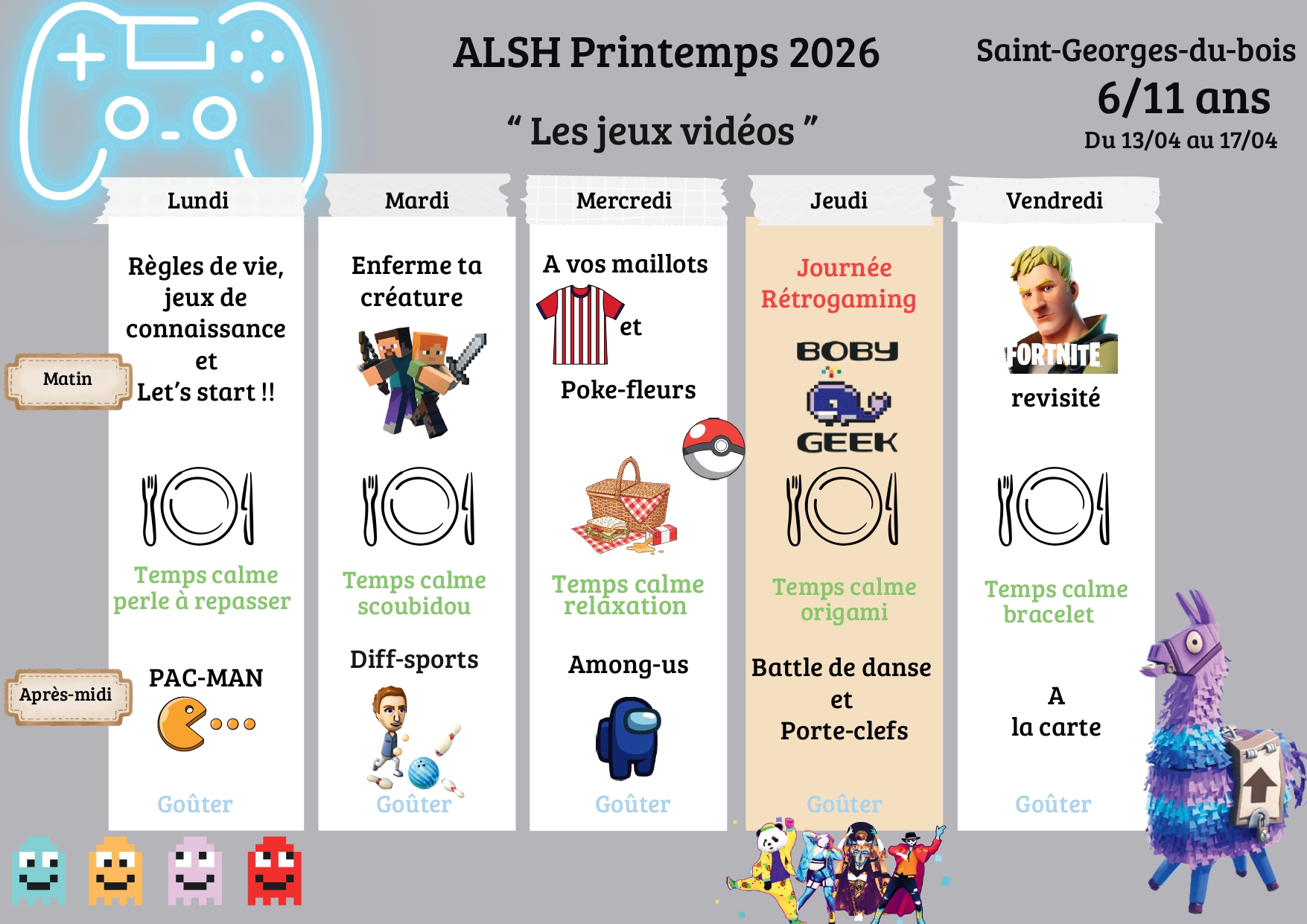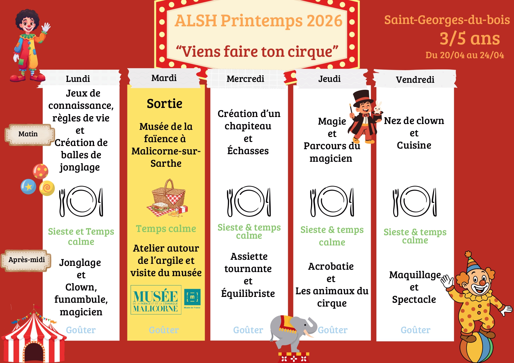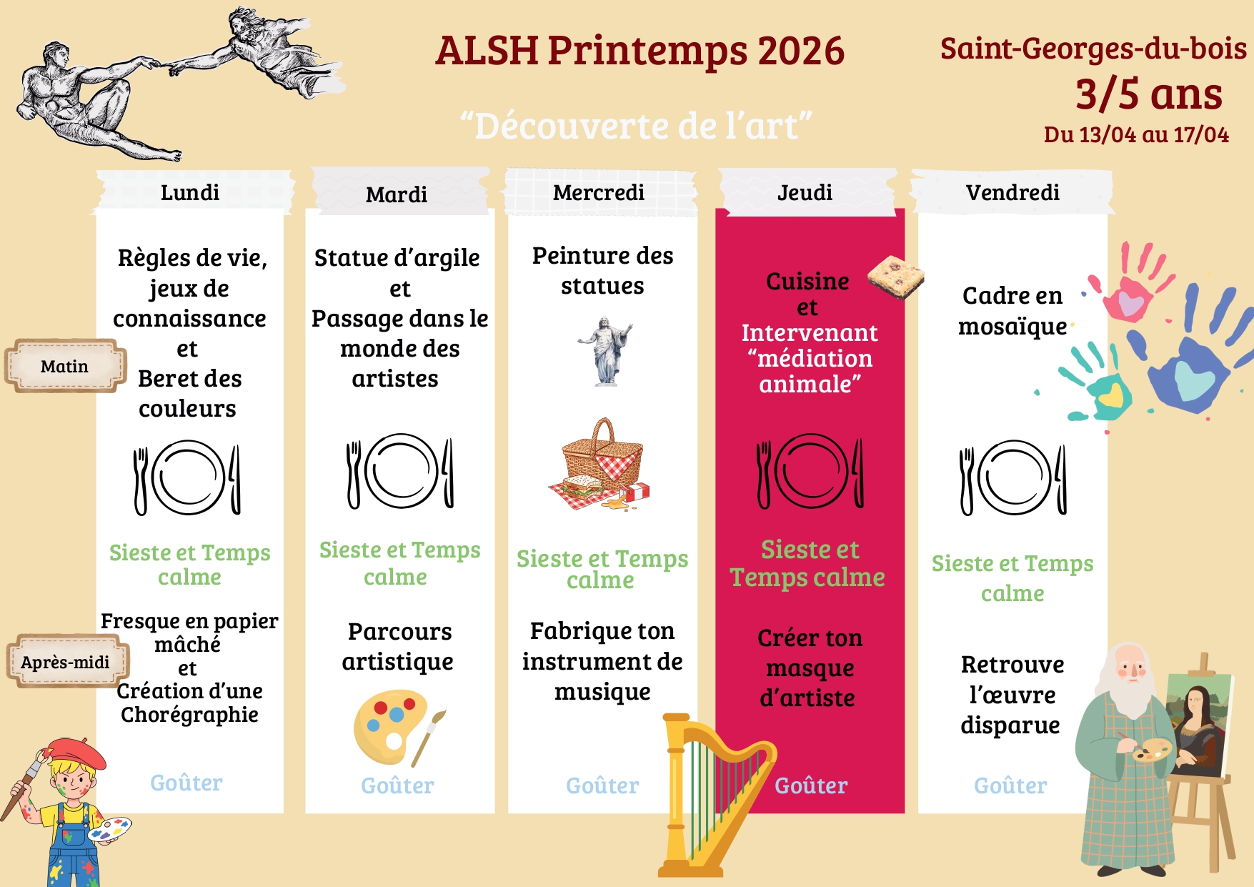 Programme d’activités ALSH du 13 au 24 avril 2026 à Chaufour notre Dame et Saint Georges du Bois.